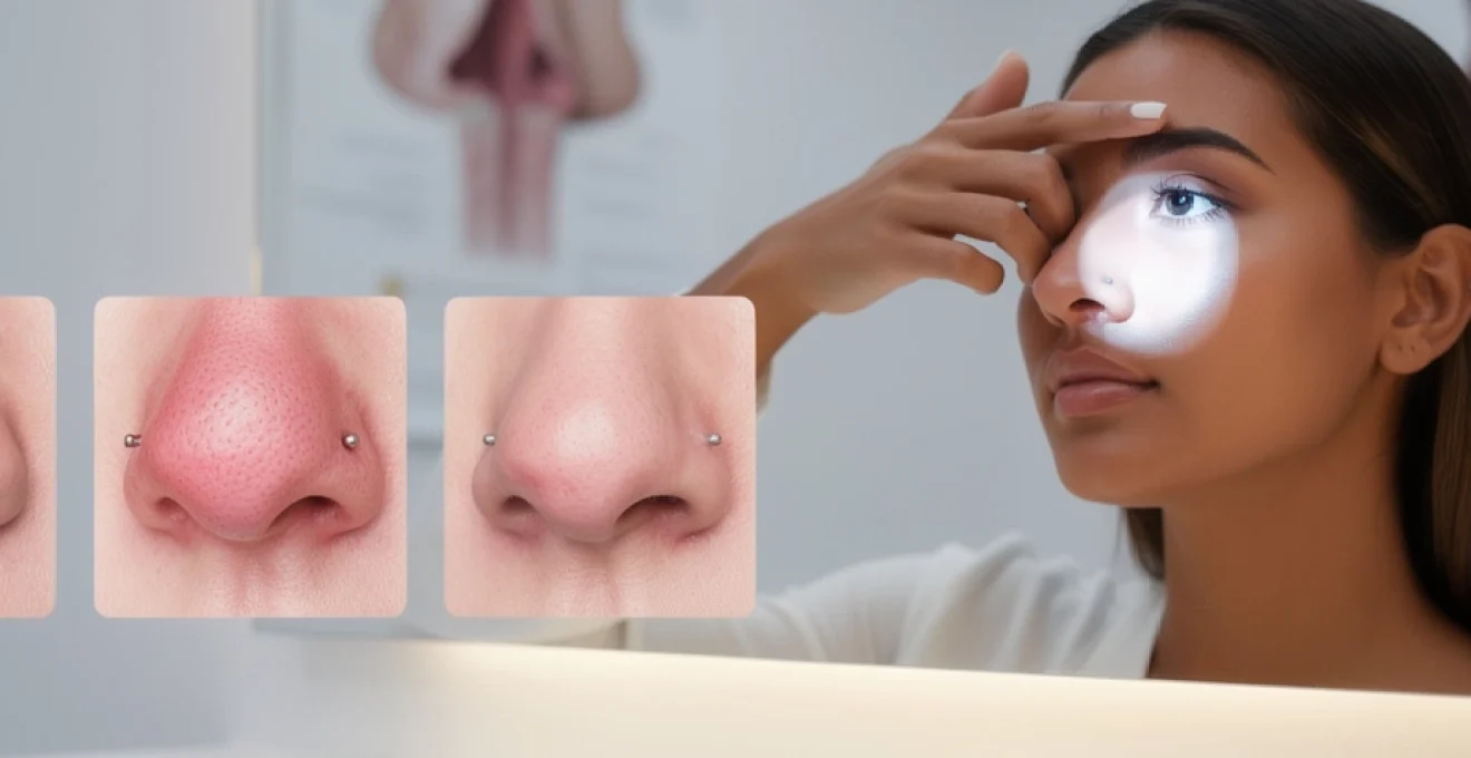Les infections se manifestent par une rougeur intense, un œdème important, une douleur pulsatile et parfois un écoulement purulent jaunâtre ou verdâtre. Les réactions allergiques, quant à elles, provoquent souvent des démangeaisons, des rougeurs diffuses et des irritations persistantes autour du piercing au nez, surtout lorsque le bijou contient du nickel. Les traumatismes répétés (accrochages, pression des lunettes, frottements des masques) entraînent de micro-déchirures qui relancent constamment la phase inflammatoire. Enfin, les excroissances cicatricielles peuvent former de petites boules autour de l’orifice, impressionnantes mais généralement bénignes, qui nécessitent un suivi spécifique.